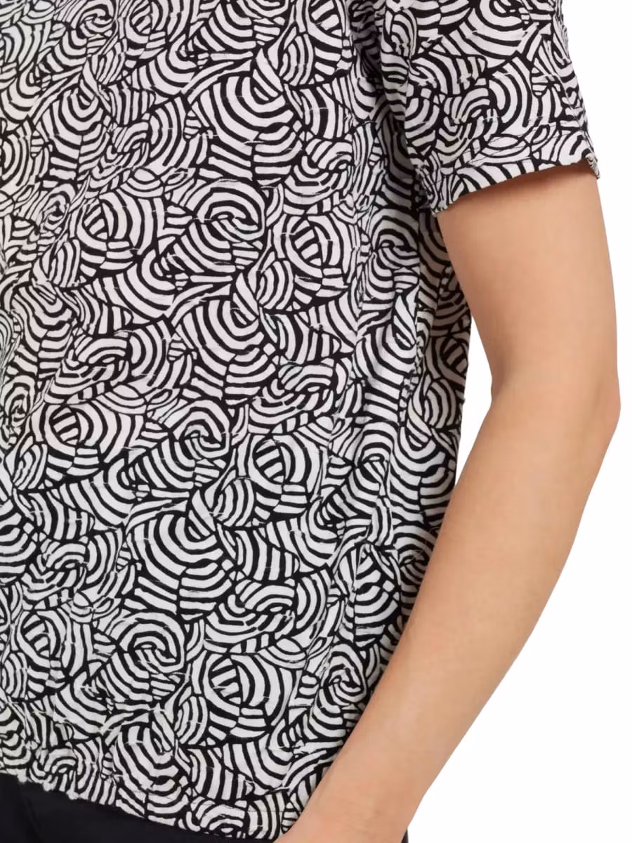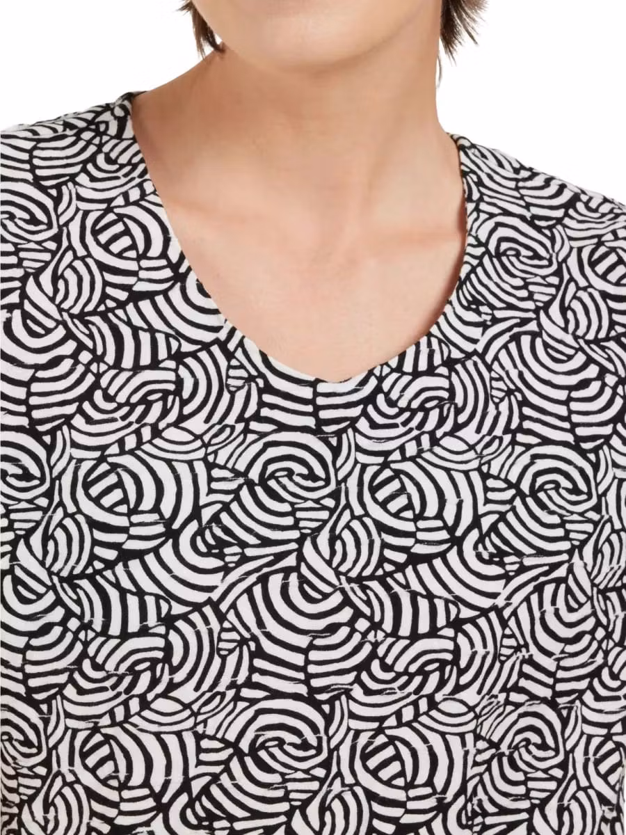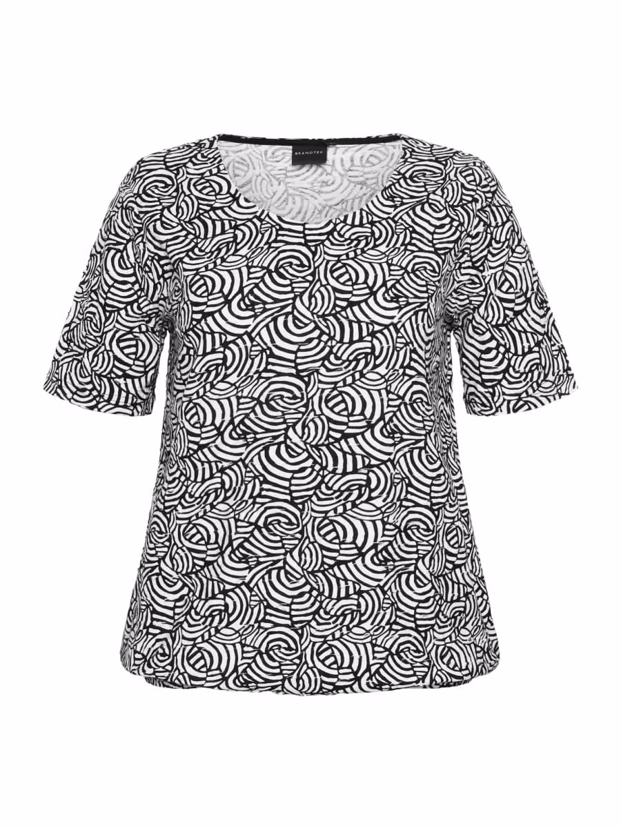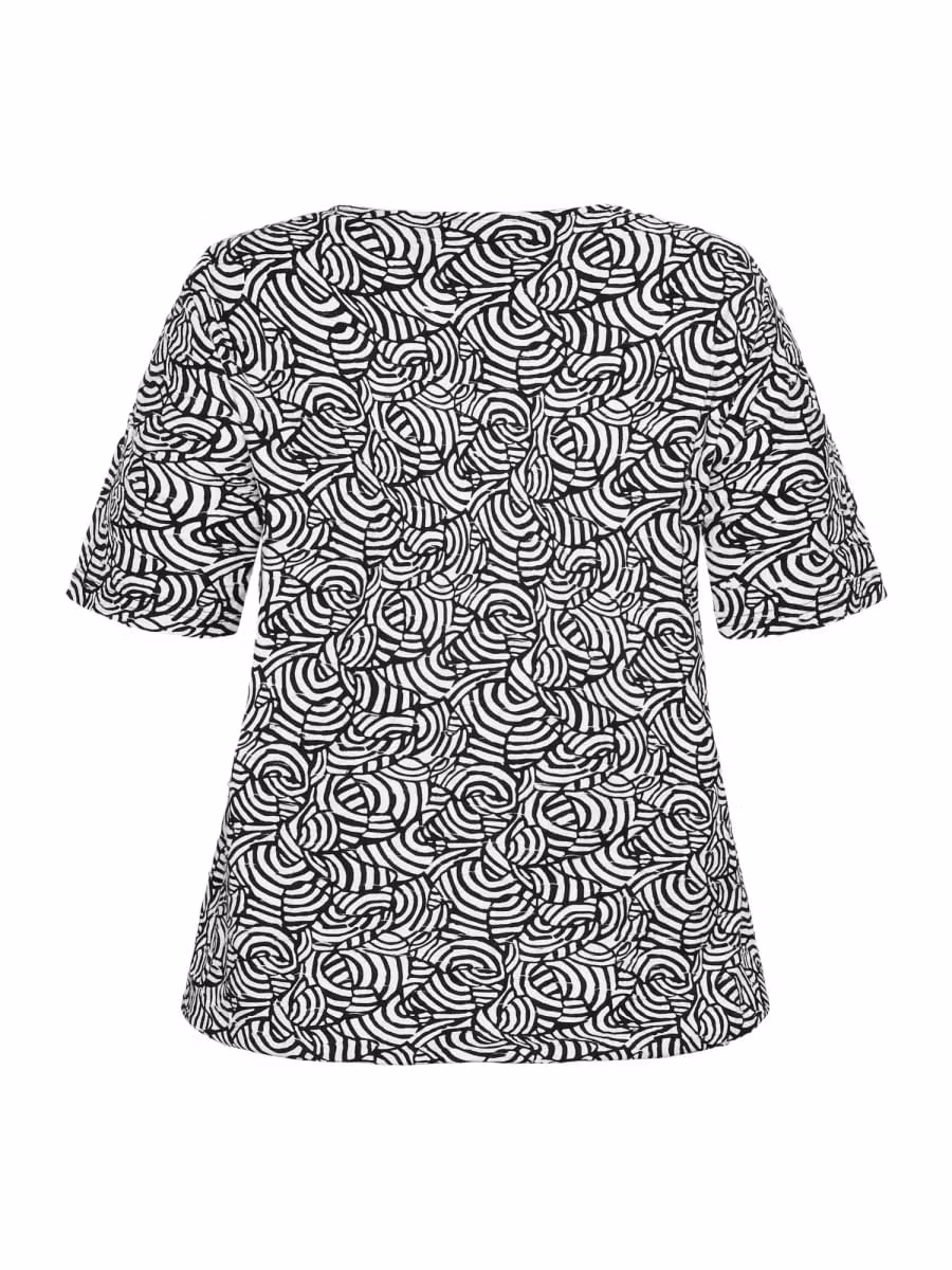Skön topp i svart/vitt med kort ärm. Resår nedtill för att enkelt anpassa plaggets längd.