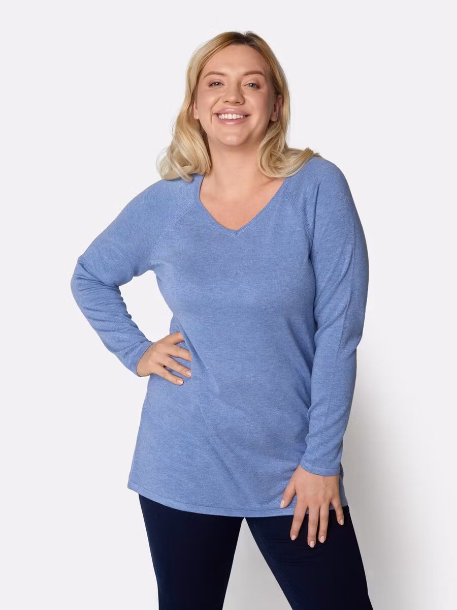 Underbart mjuk och skön slätstickad tröja med lång ärm och V-halsringning. Användbart tröja vid alla tillfällen!