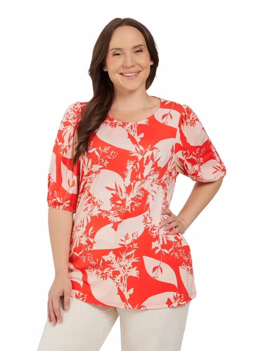 Skön topp rund halsringning. Rymliga 1/2 ärmar med resår nedtill.
