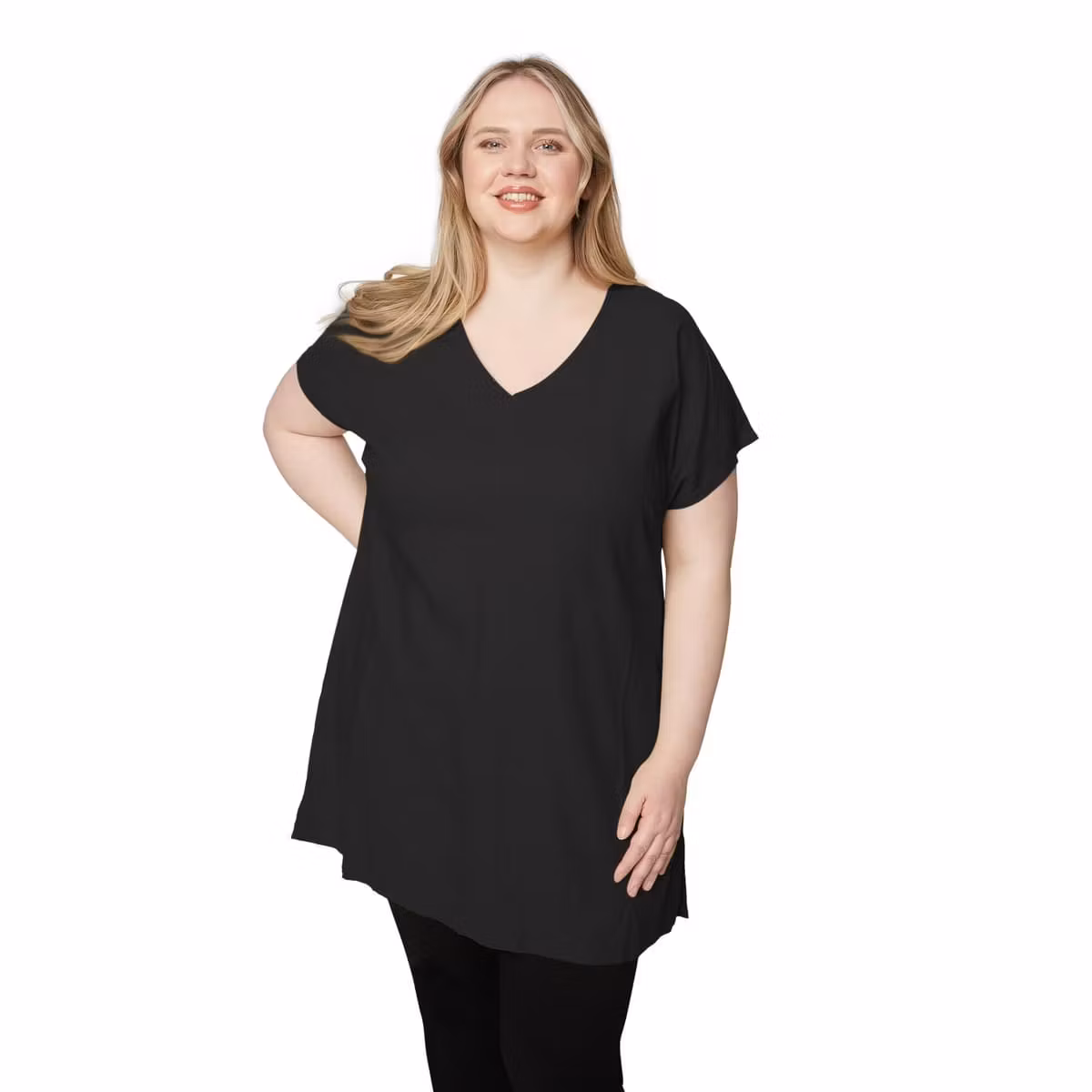 Tunika med kort ärm och V-ringning i härlig lin/viskos kvalitet. Fickor i sidorna och en slits nedtill. Färg: svart55% Lin, 45% ViskosLängd ca 85 cmTvättrå ... [Se fullständig beskrivning]