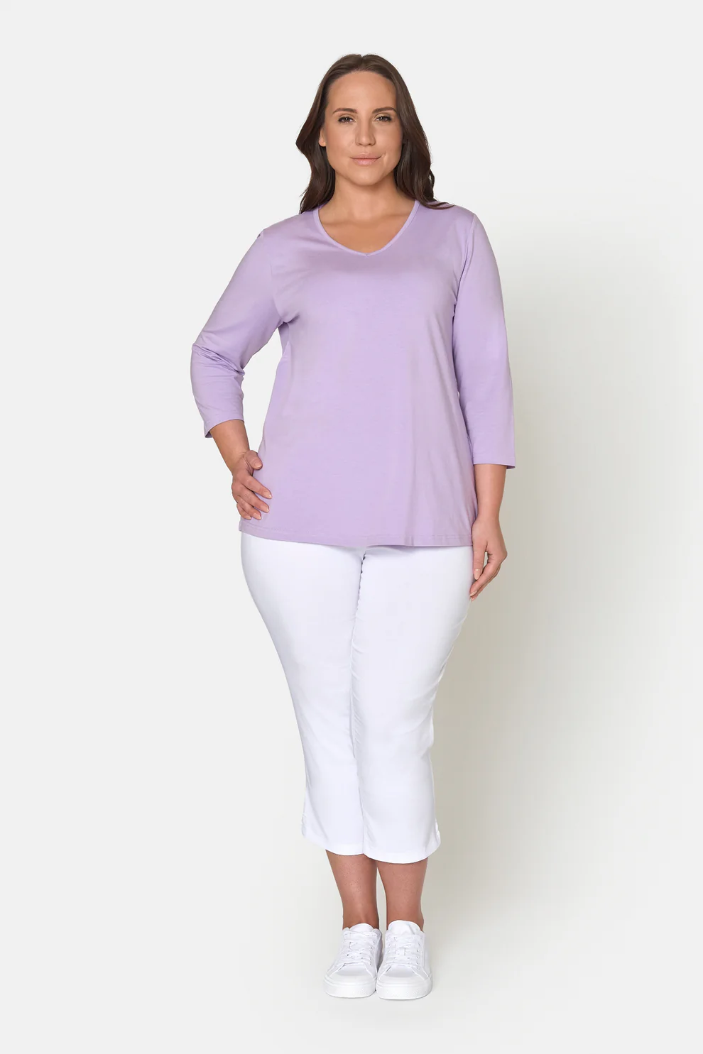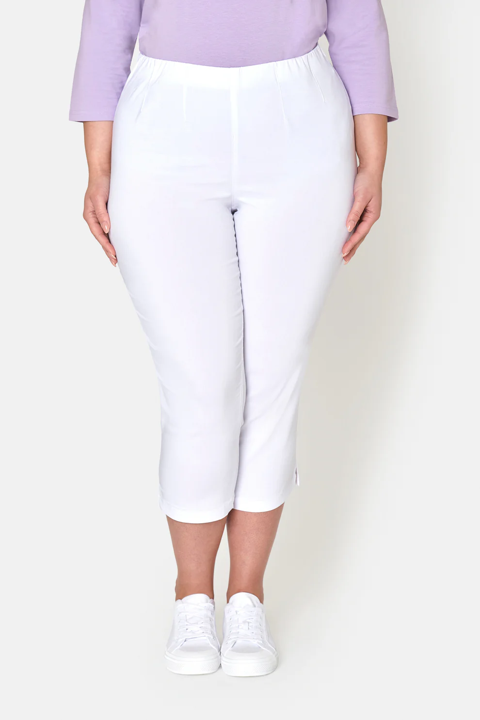 Klassisk vit 3/4 byxa i skön bengalin kvalitet. Byxan har en liten slits vid benslutet samt resår i midjan. Sydda insnitt i midjan runt om för bra passform. Lika snygga till vardag som till fest.