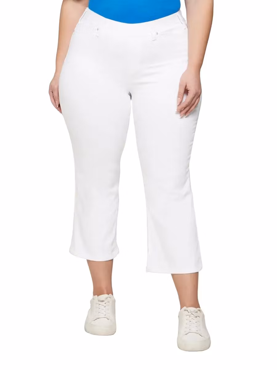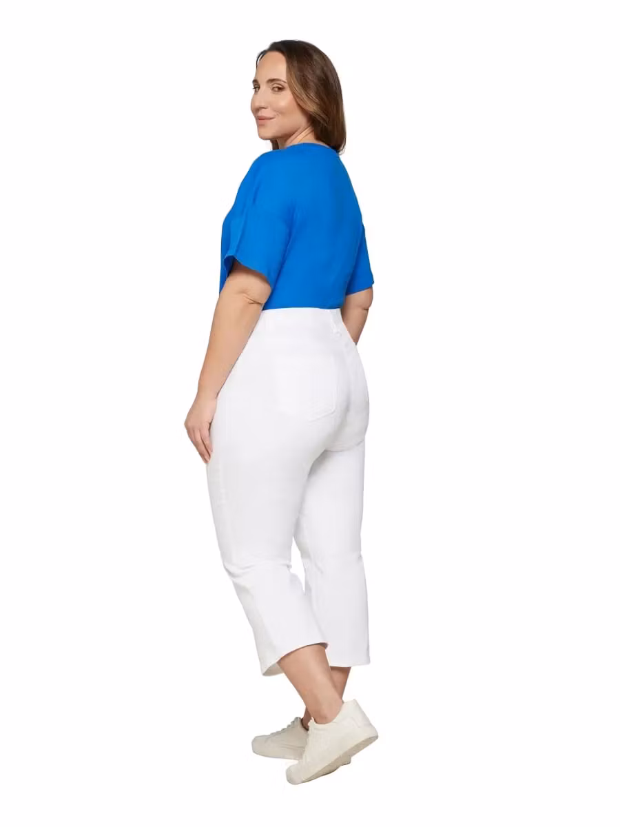 Snygg flared capribyxa i mjuk skön och kraftig kvalitet med stretch. Resår i midjan, hällor runt om. Fickor bak och fuskfickor fram. Snygga till en topp med ett par sneakers till för rätta sommar-looken.