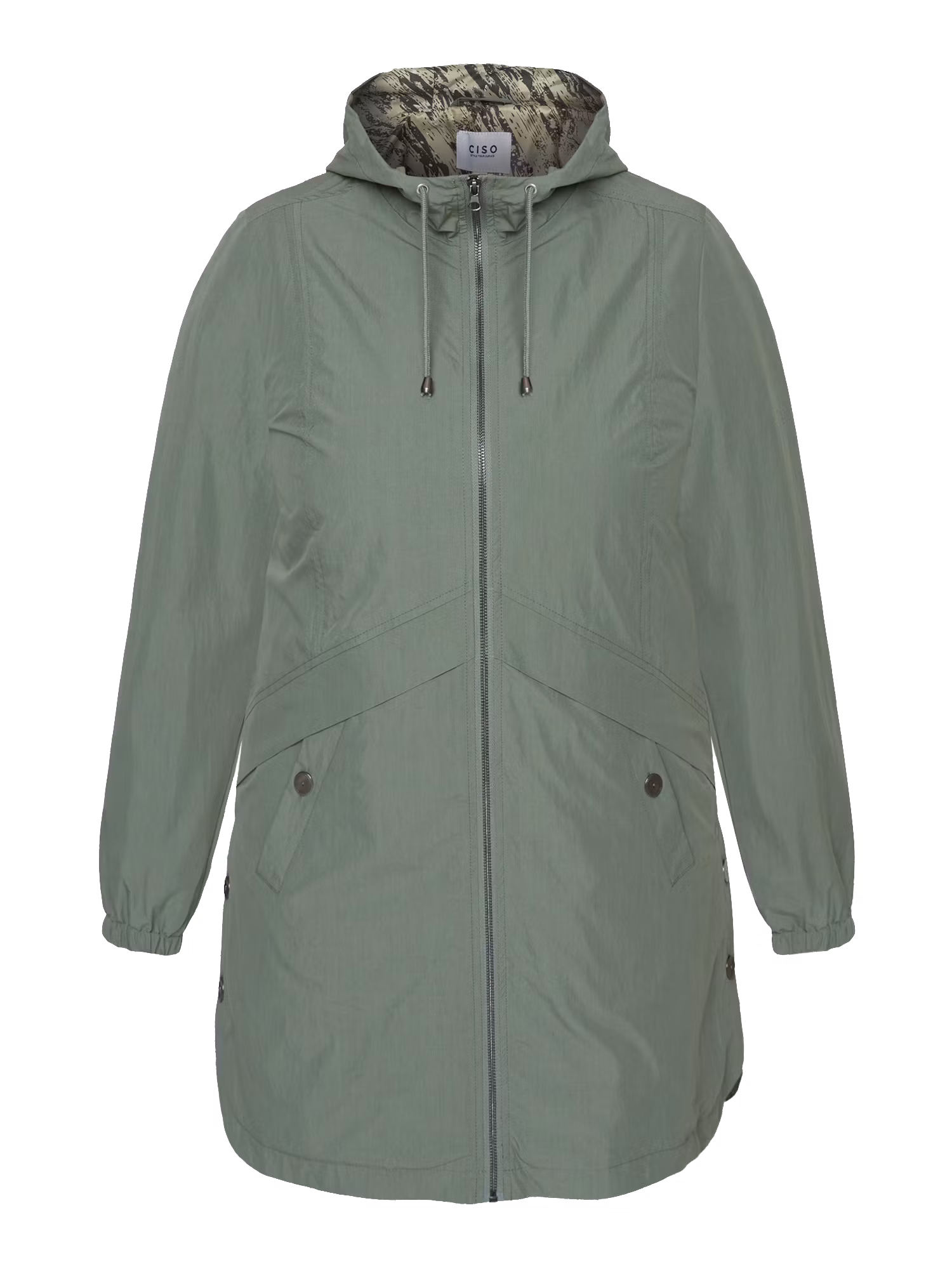 Lång jacka i snygg design med tunt foder. Jackan har hätta som går att dra åt med ett band, fickor med en knapp och jackan knäpps med dragkedja. Slits i sidorna som knäpps med knappar. Resår i nederkant på ärmen för bra passform. Obs! XL i Ciso mosvarar ca storlek 2XL i Signature.