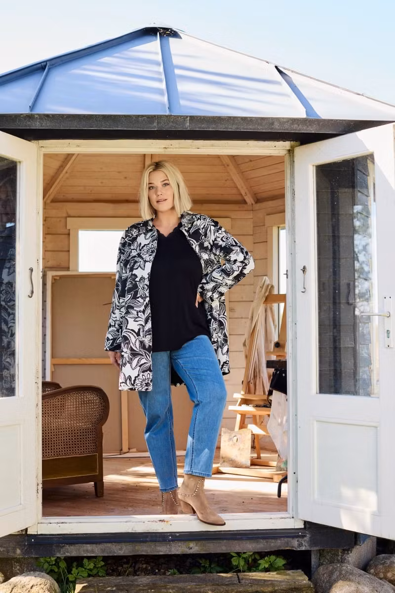 Skön vindavvisade mönstrad vårkappa/jacka med krage. Genomgående knäppning med knappar. Veck i ryggen för bra passform. Färg: Black100% PolyesterLängd ... [Se fullständig beskrivning]