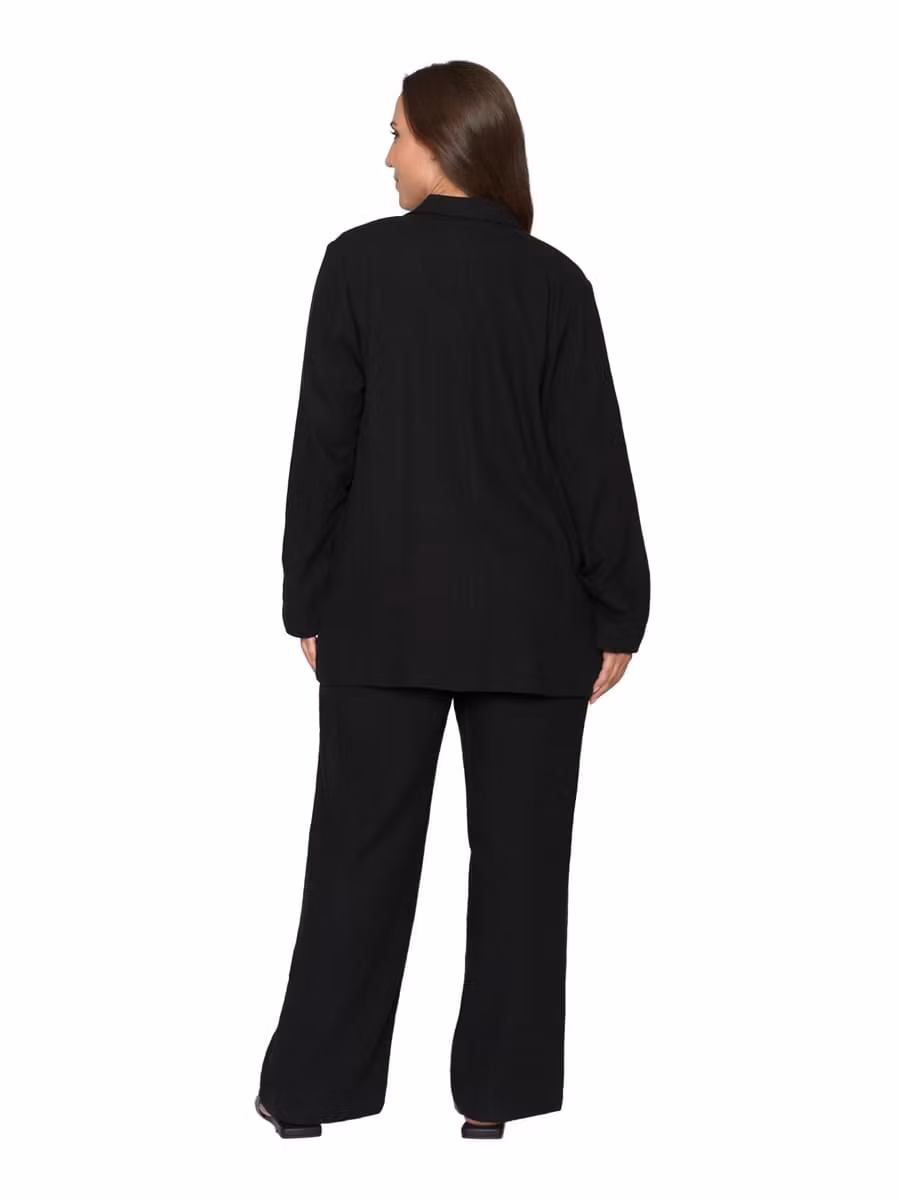 Snygg rymlig ofodrad svart kavaj med krage/slag med djupt snitt och knäppning med 2 knappar. 2 påsydda fickor. Härlig kvalitet i lin/viskos. Matcha med byxa i samma material för hel kostym-look. (Obs! XL i Ciso motsvarar ca storlek 2XL i Signature)