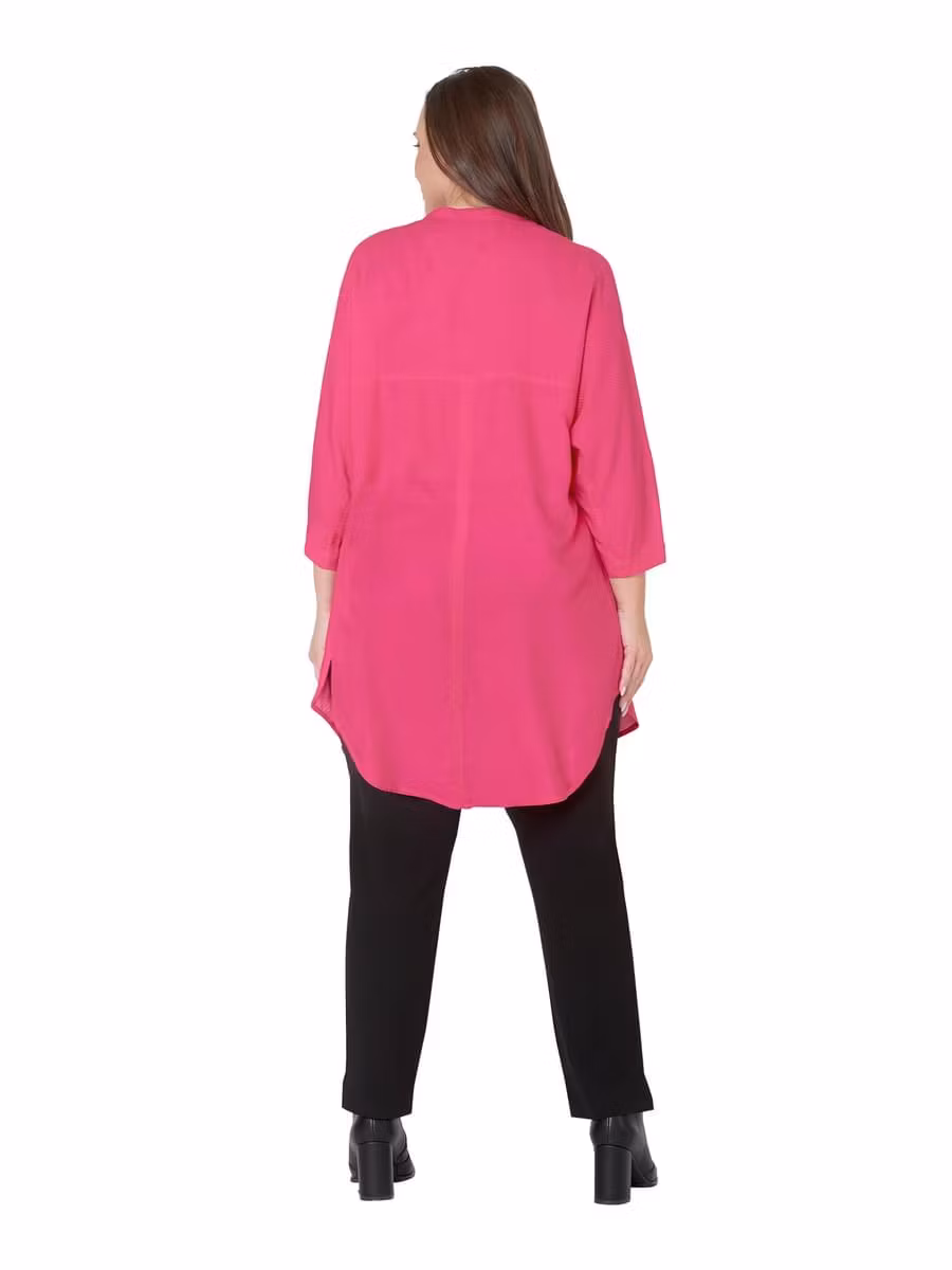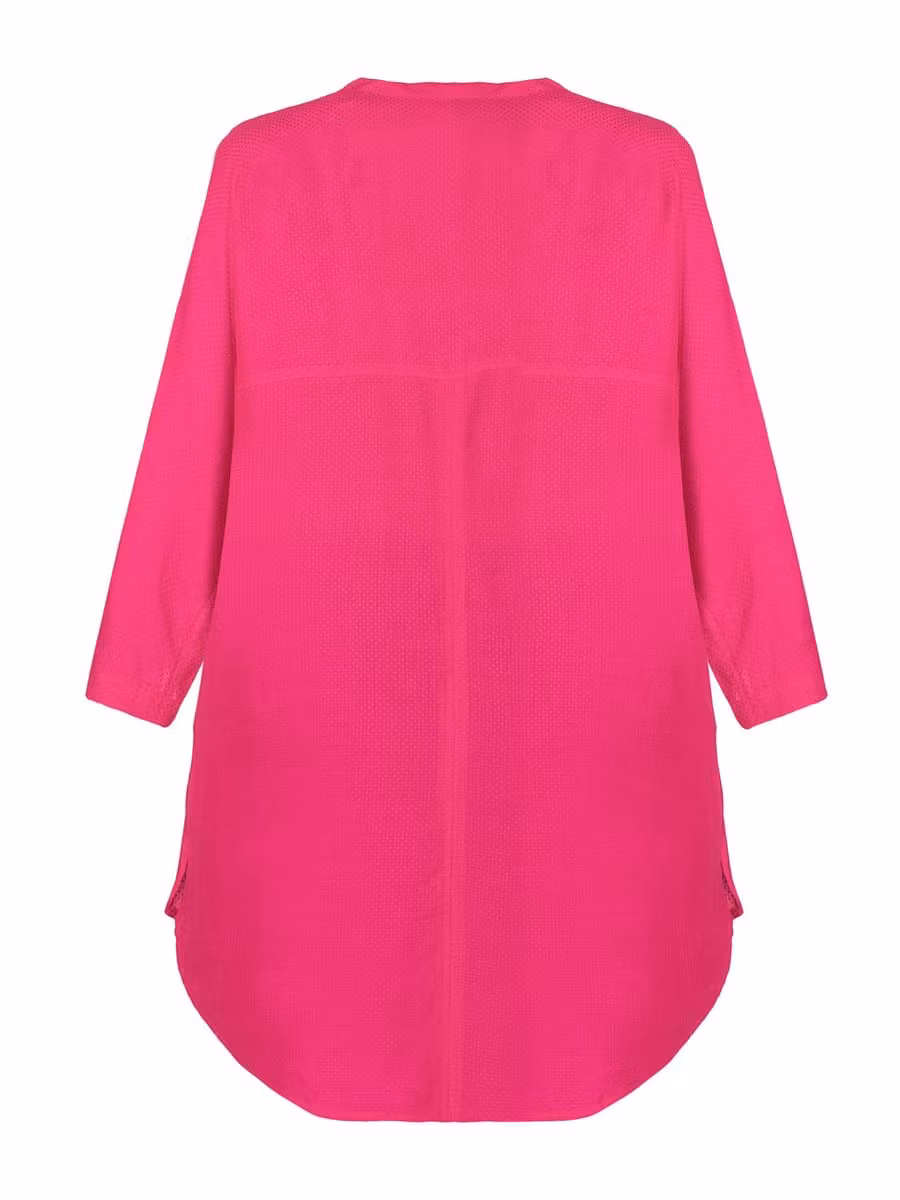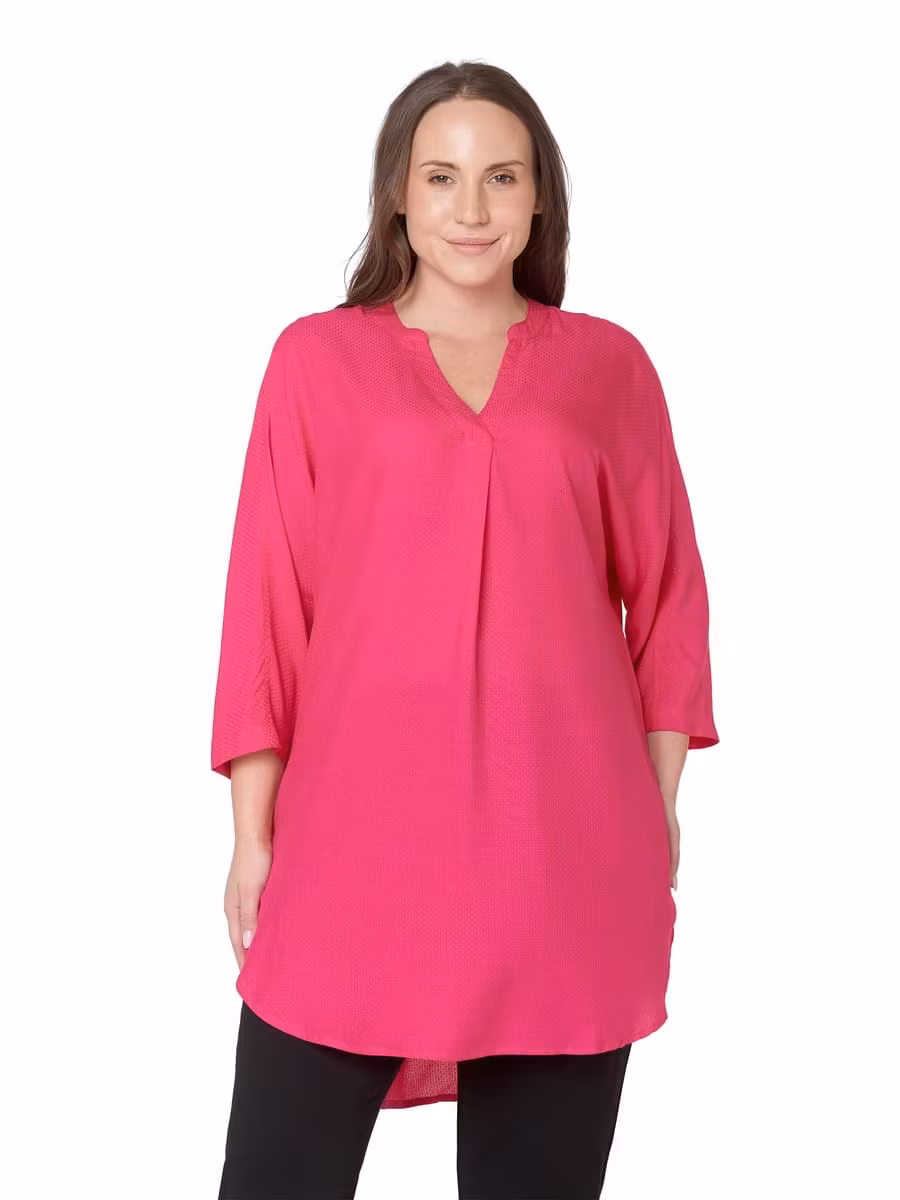 Superfin sval pink peacock färgad tunika med 3/4 ärm. V-halsringning med ett veck framtill för bra passform. Rundad nederkant med sprund i sidan, längre baktill.