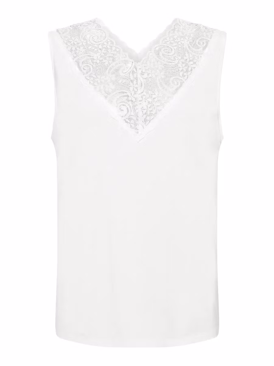 Skönt linne med snygg V-halsrigning med spets runt om. V-ringad även baktill. Perfekt linne att ha under en skjorta eller en kavaj. Färg: Cloud dancer95% V ... [Se fullständig beskrivning]
