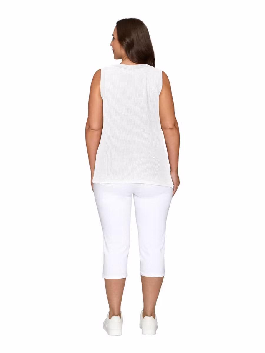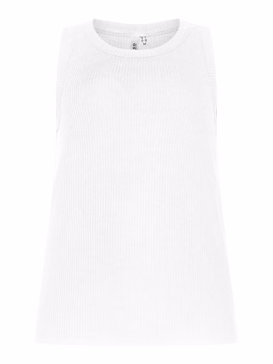 Superskönt och snyggt vitt ribbat linne med rund halsrigning. Underbar kraftig kvalitet och inte genomskinligt!