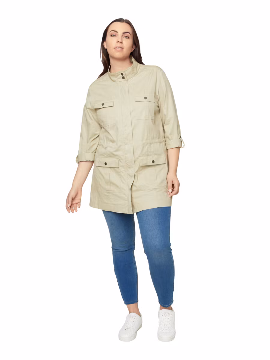 Övergångsjacka i 100% bomull. Snygg användbar design och praktisk grå/sand färg som passar bra till det mesta. Lite högre krage med knäppning framtill. Jackan går att reglera i midjan, 4 fickor framtill och jackan knäpps med dragkedja. Armlängden går att reglera med en "stropp" och knapp. Obs! XL i Ciso mosvarar ca storlek 2XL i Signature.