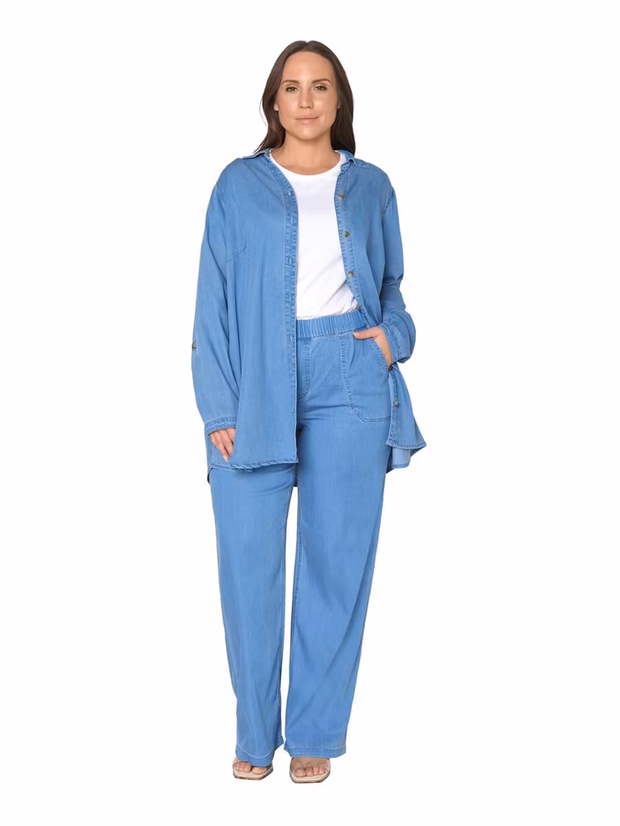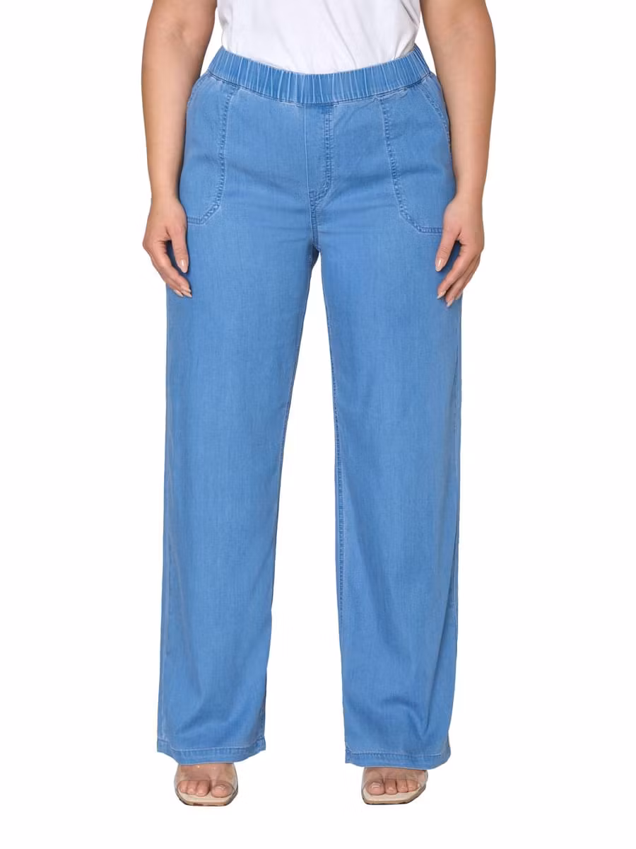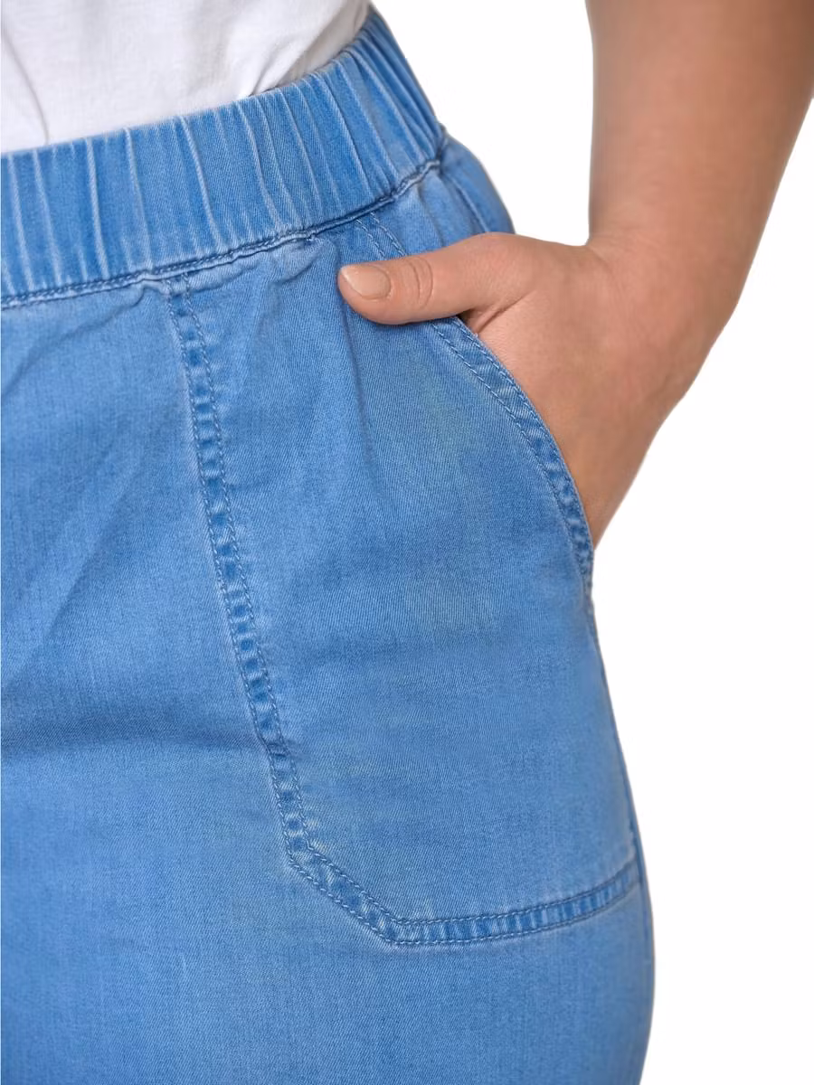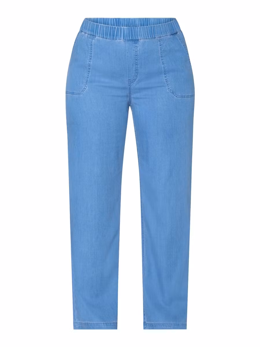 Sköna ljusblå raka jeans med resår i midjan och fickor. Snygg ljus denimfärg, matcha med jeansskjorta i samma kvalitet för ett helt set. Användbar byxa i underbar kvalitet.