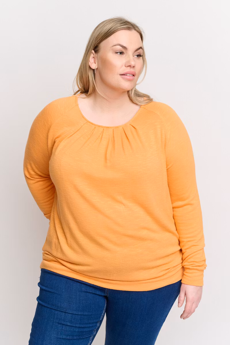 Fin topp med snyggt veckad halsringning i skön tunn jerseykvalité. Långa ärmar med mudd samt mudd nedtill på toppen. (Strl L i Ciso motsvarar ca strl XL i Signature)