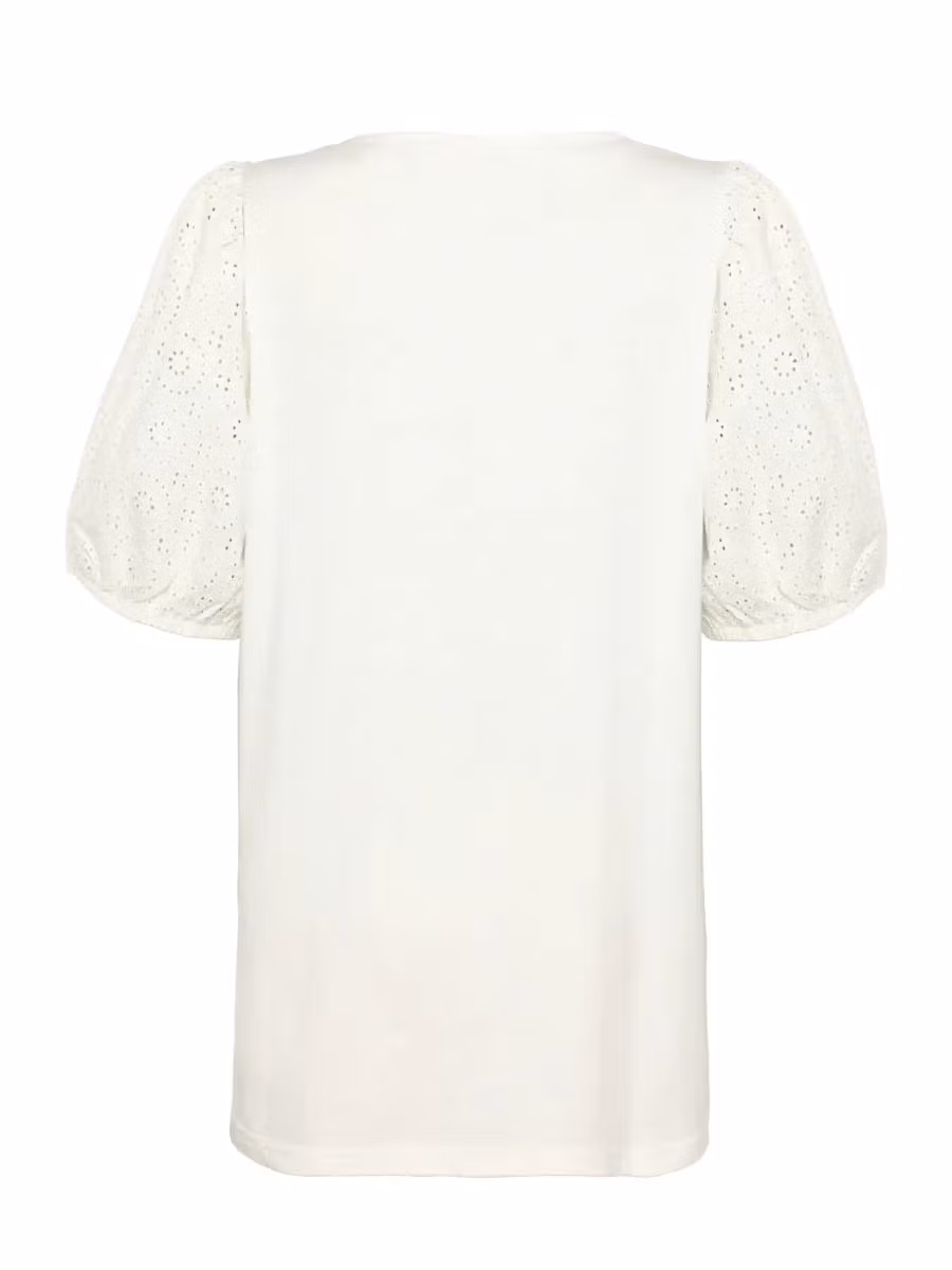 Fin svart topp med rund halsringning. 1/2 långa ärmar med snyggt hålmönster. Skön kvalitet och snygg topp/blus till alla tillfällen.