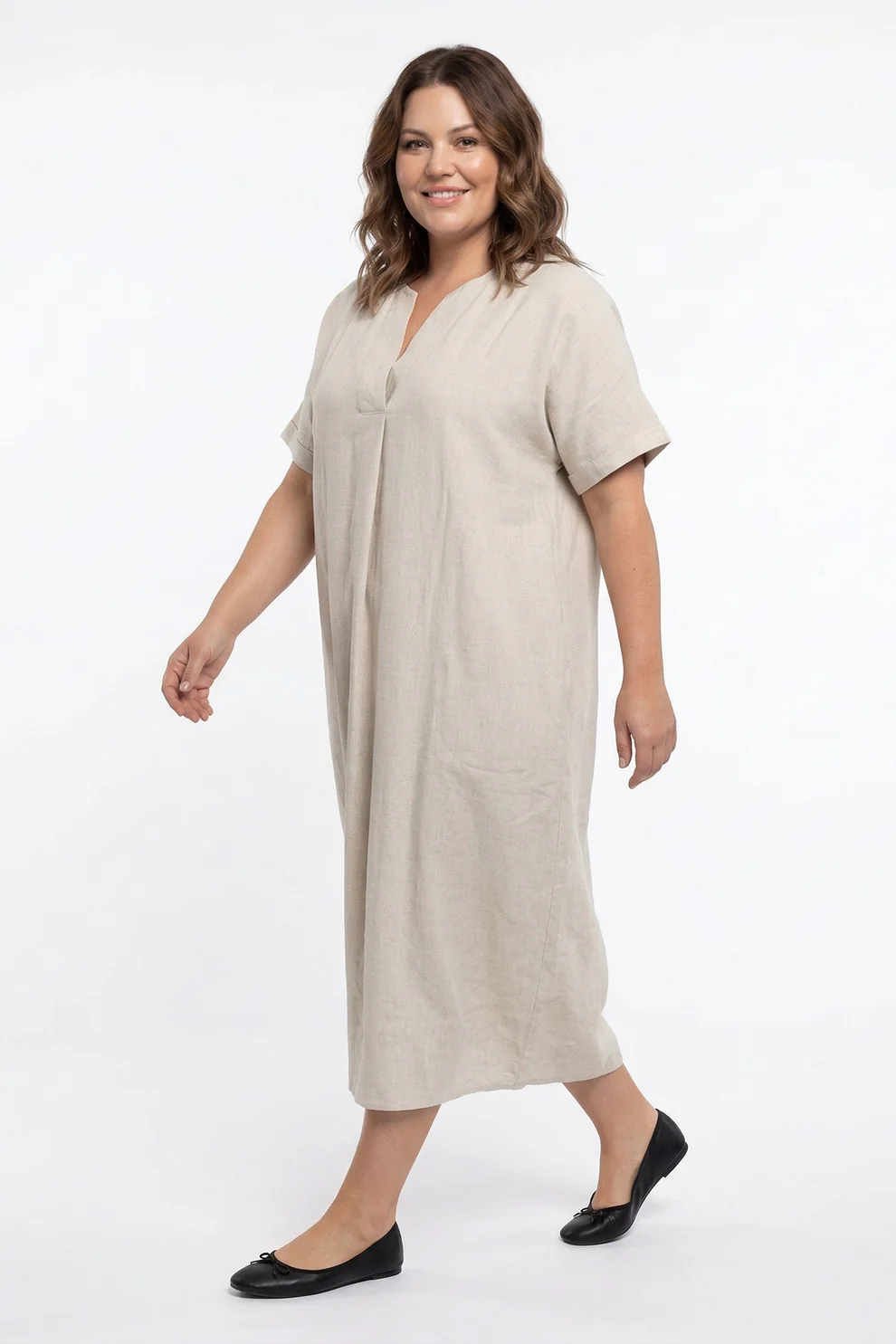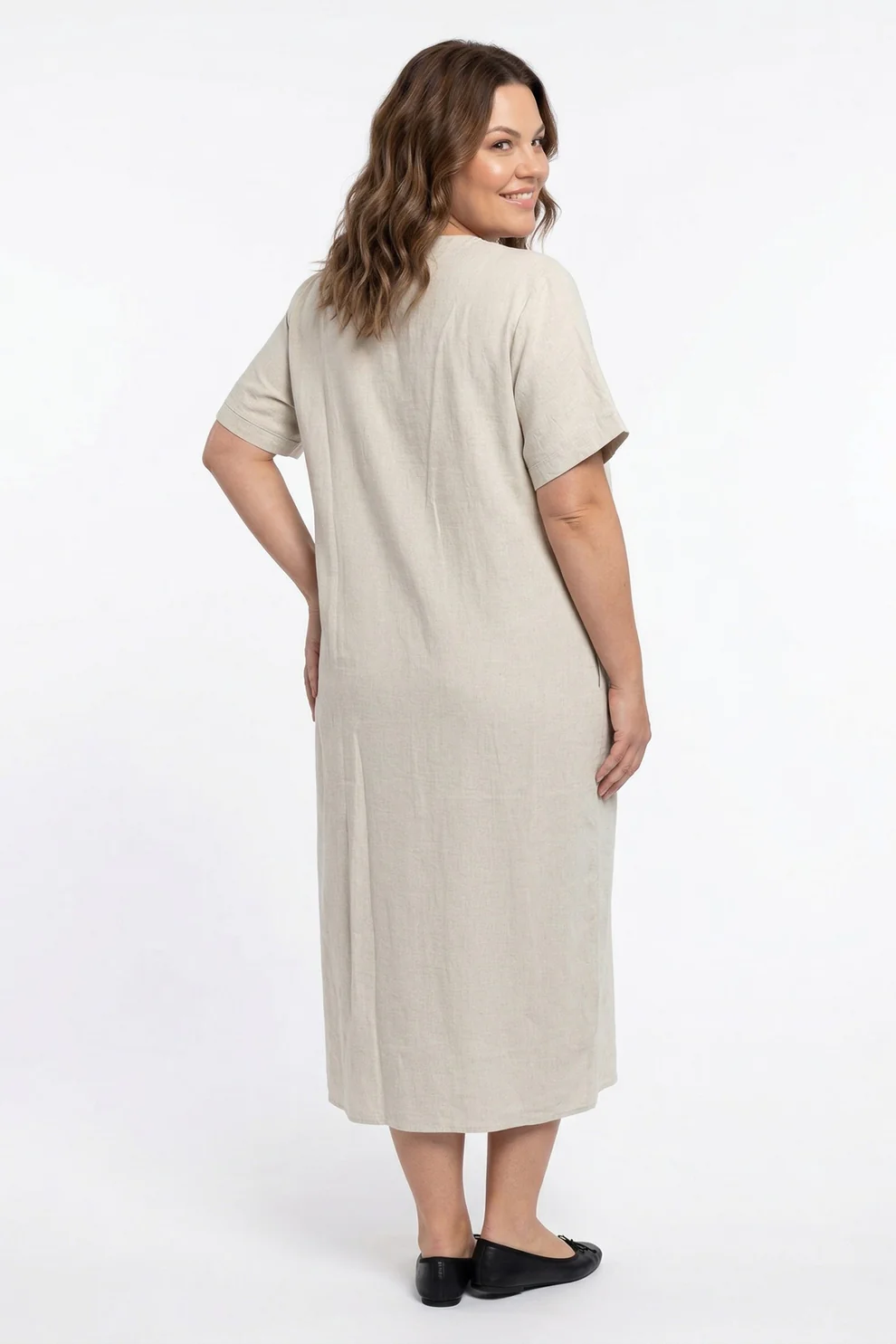 Skön klänning i underbart kvalitet. Korta ärmar och V-halsringning. Lika fin till festen som till vardags. 80% Viskos, 20% LinFärg: Sand MelangeLängd: ca 1 ... [Se fullständig beskrivning]