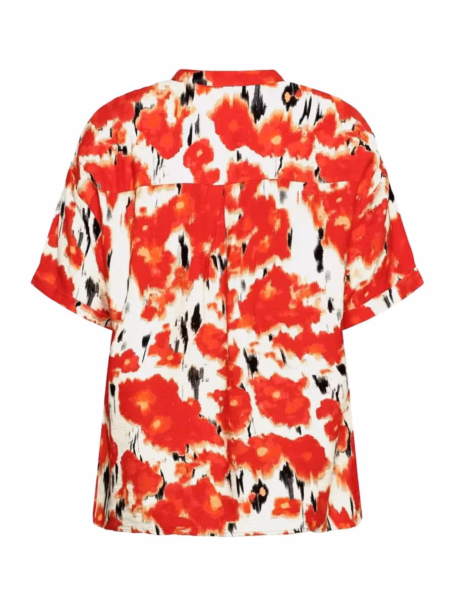 Skön bus/skjorta med korta ärmar i härliga färger. Ett litet uppvik på ärmen och genomgående knäppning med knappar. Snygg till linnebyxor i matchande färg.  ... [Se fullständig beskrivning]