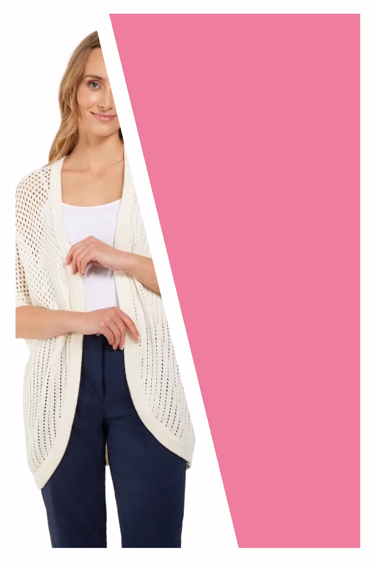 Härlig luftig kofta med 1/2 långa ärmar. Praktisk och snygg "att ha över sig" kofta i vår/sommar.Färg: PINK (Skarp rosa)100% BomullLängd: ca 60 cmTvättråd: 30 g ... [Se fullständig beskrivning]