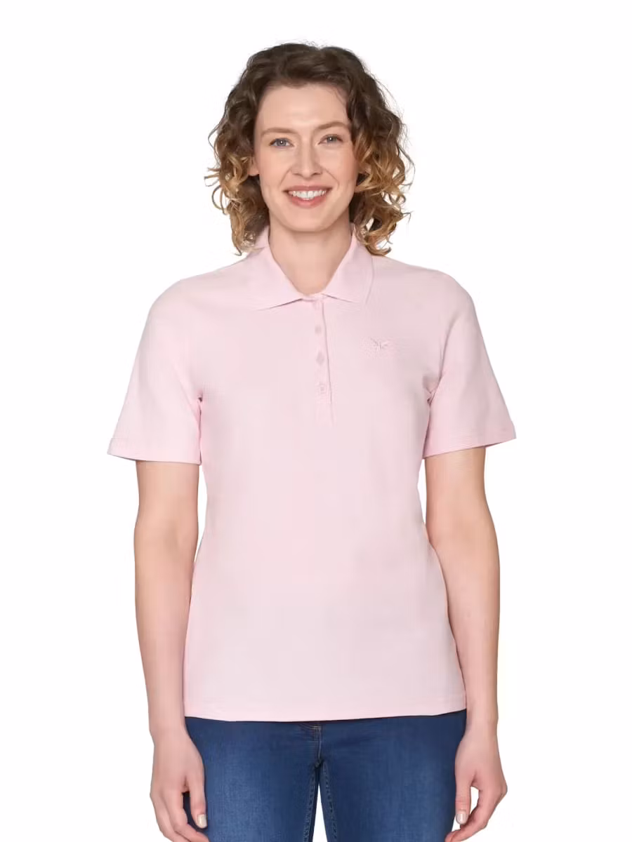 Klassisk pikétopp med kort ärm och krage. Knappar framtill och ett litet broderat märke. Perfekt på golfbanan till en kjol eller capri/shorts.