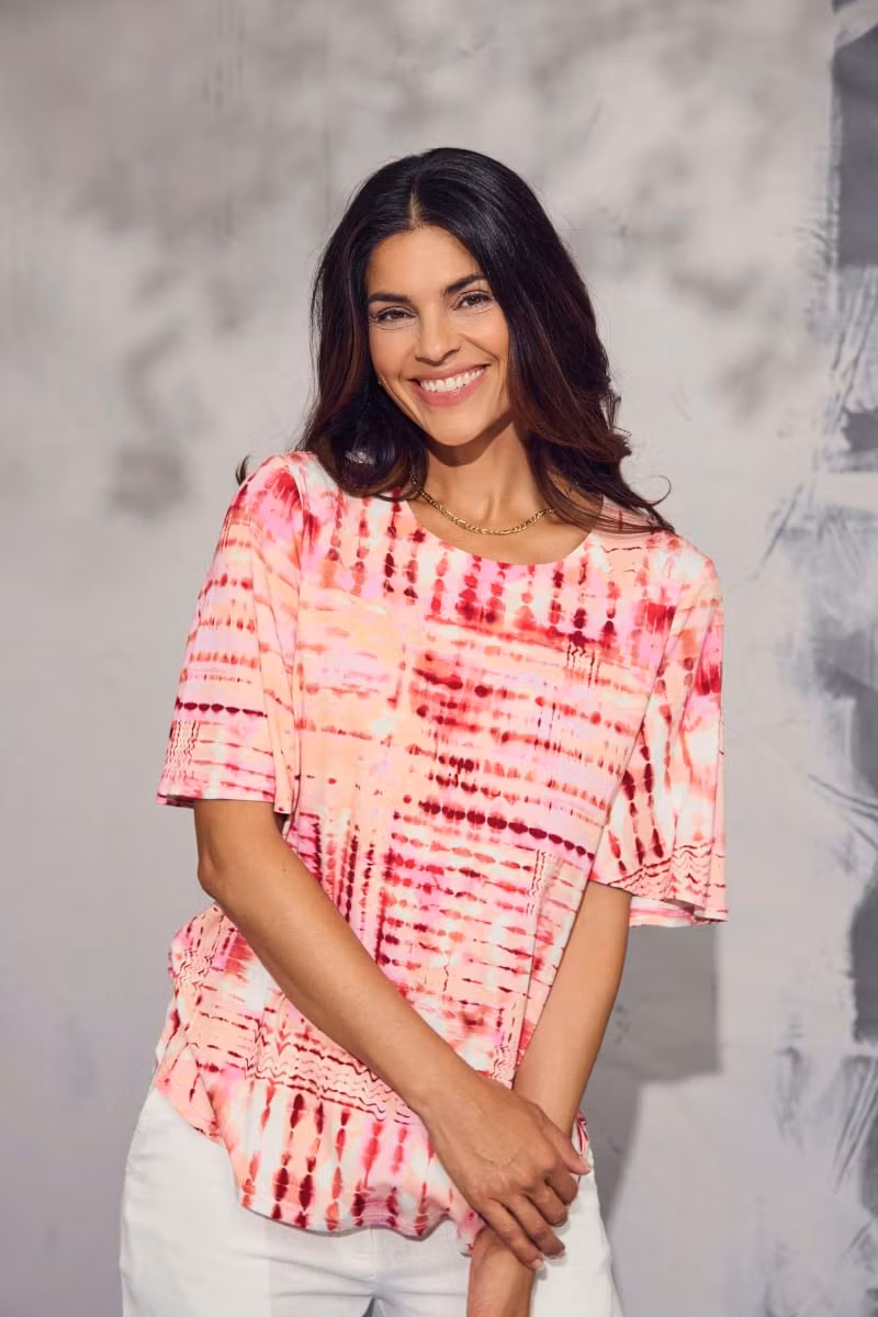 Fin topp i härliga färger. Rund halsringning och 1/2 långa ärmar med bra vidd. Fin till ett par vita eller beige byxor. Färg: Calypso Coral95% Viskos 5% El ... [Se fullständig beskrivning]