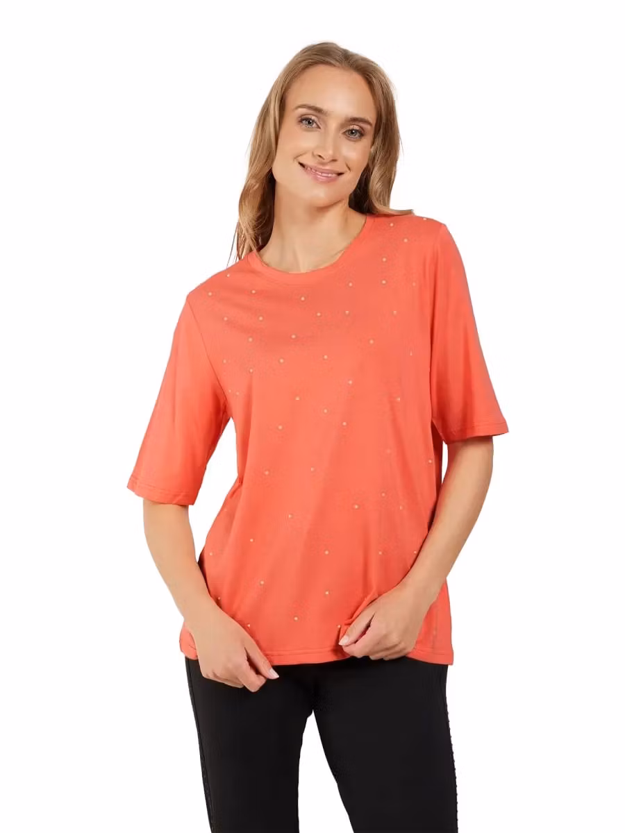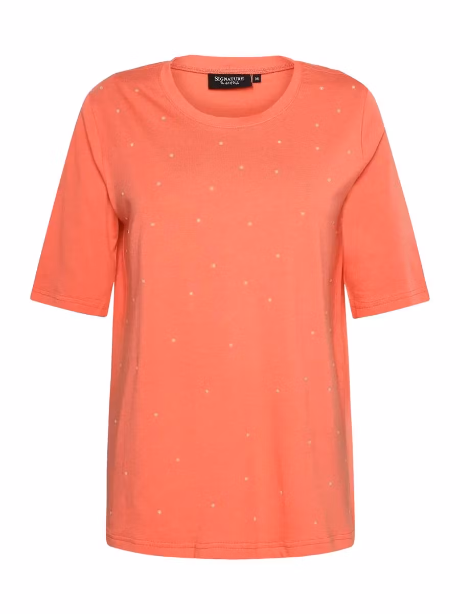 Skön topp med rund halsringning. "Pärlemo"liknande pärlor framtill.47% Bomull, 47% Modal, 6% ElastanFärg: MelonLängd: 62 cmTvättråd: 30 grader, kan krympa upp t ... [Se fullständig beskrivning]