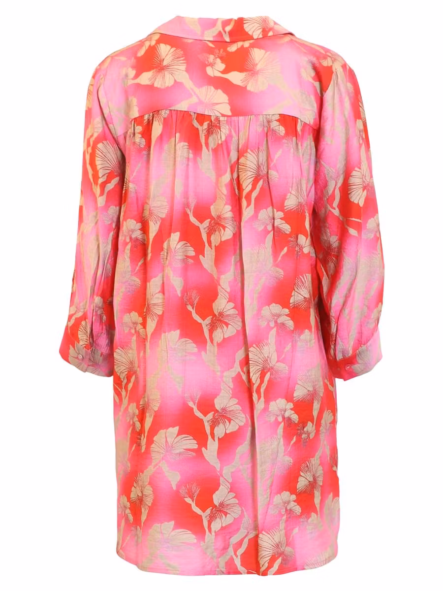 Skön långskjorta i underbart print och färger. Krage och 3/4 ärmar. Genomgående knäppning med fina knappar. En härlig blus i skön kvalitet till festen eller till vardags.