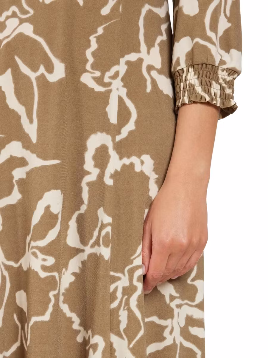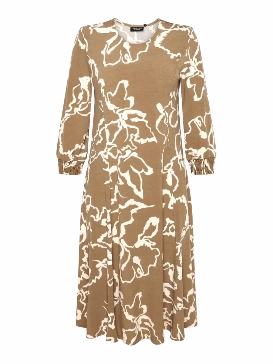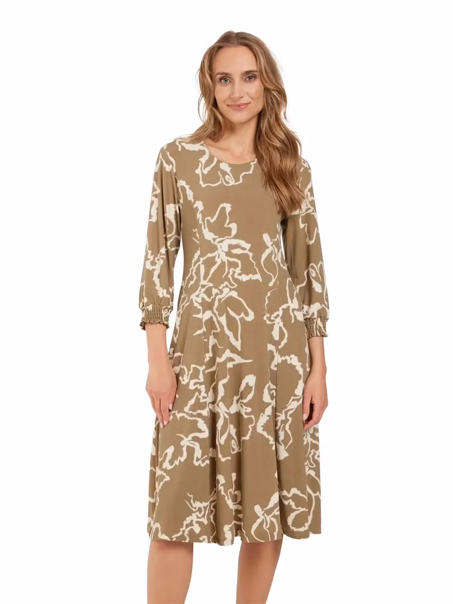 Skön klänning i snygg färg/print. 3/4 ärmar med smock nedtill. Rund halsringning. Bra vidd i klänningen nedtill.Färg: Light Kahki96% Polyester, 4% ElastanLängd: ... [Se fullständig beskrivning]