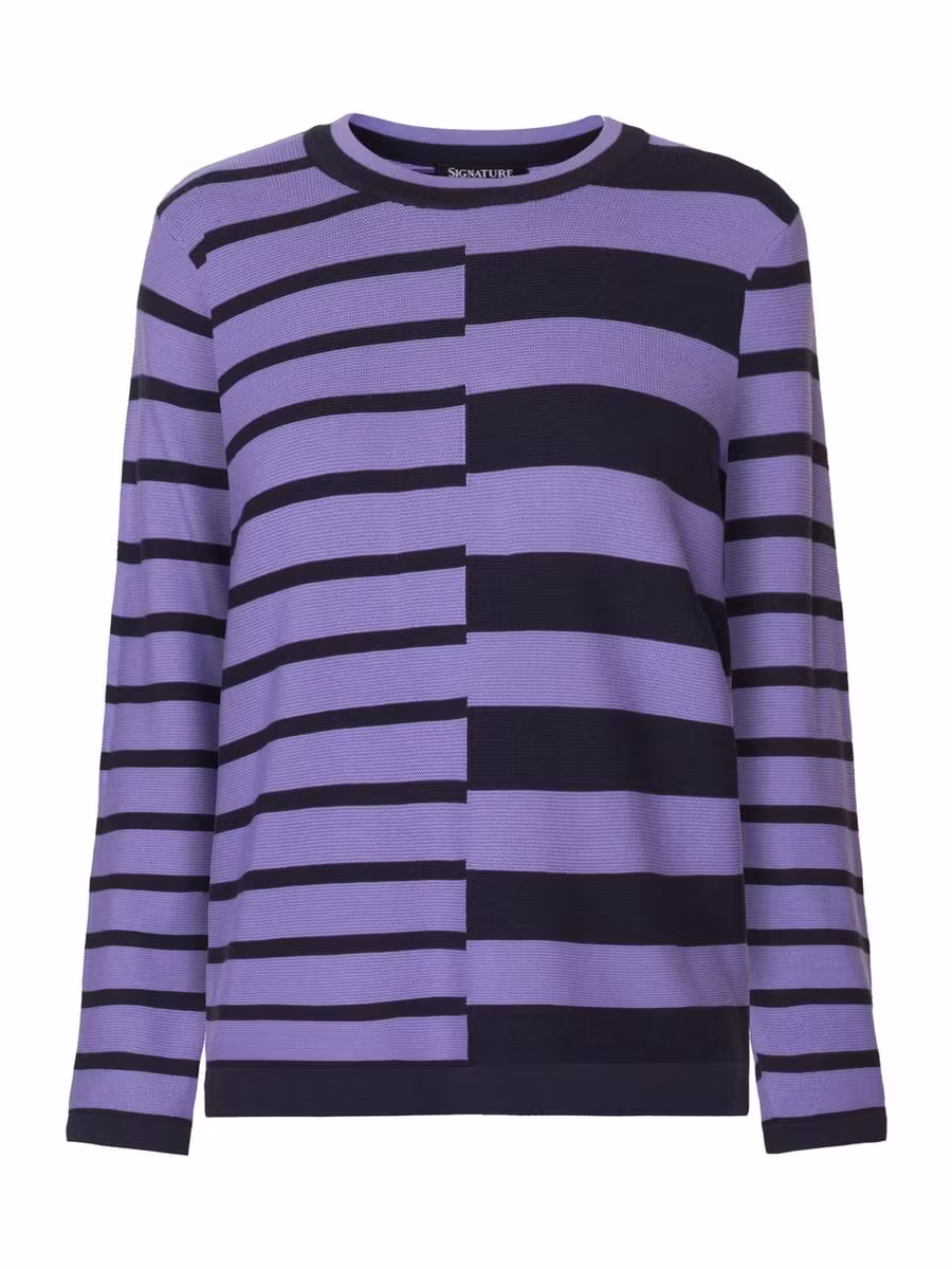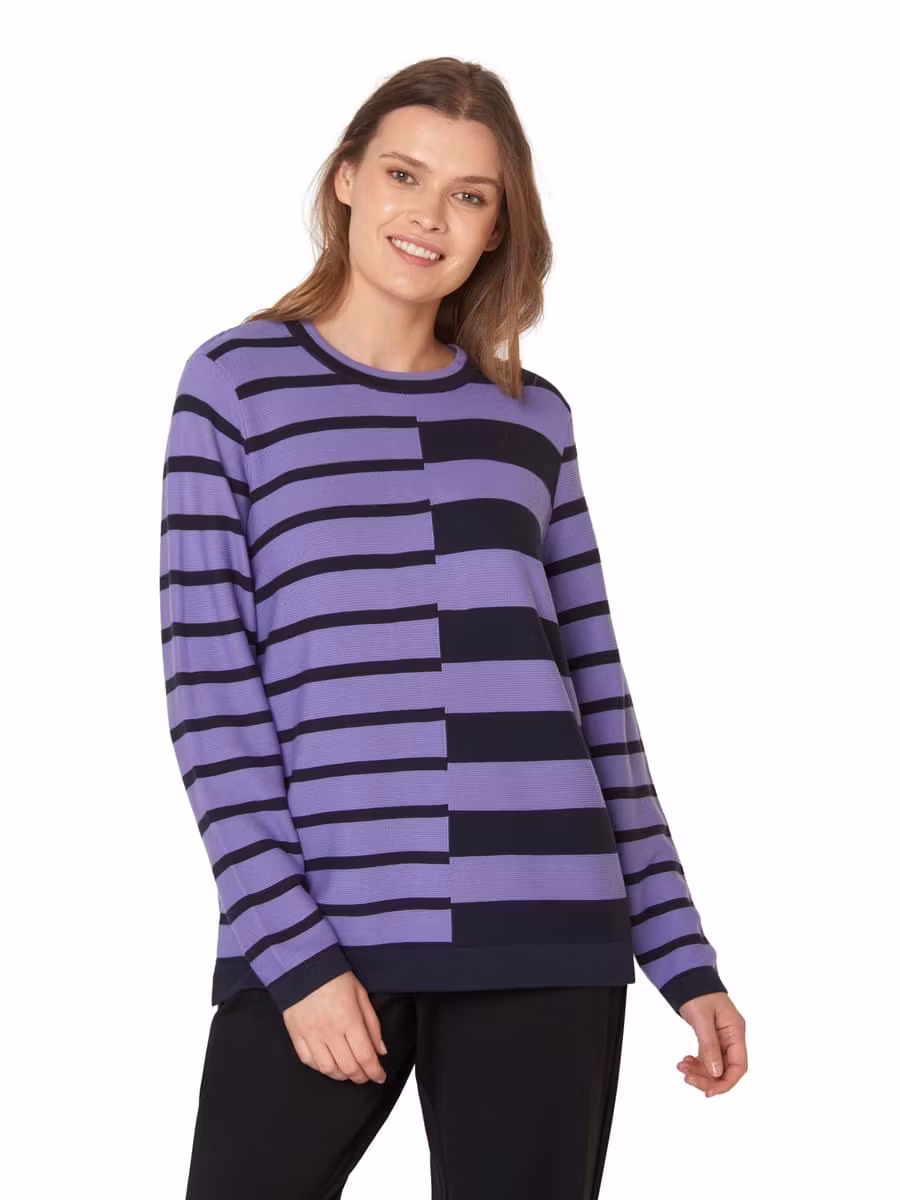 Snygg tröja i fint mönster, härlig färg och skön kvalitet. Rund halsringning och långa ärmar.