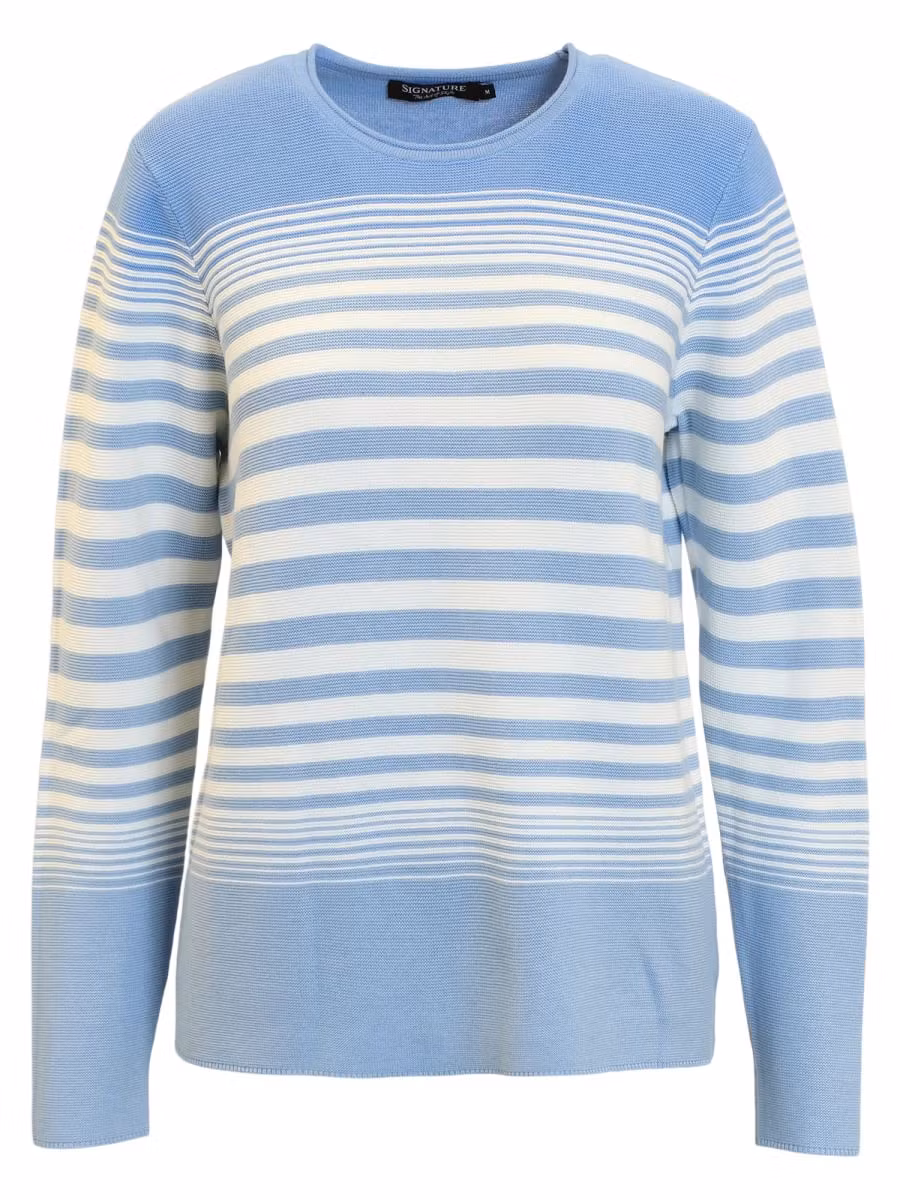 Snygg användbar tröja i fint mönster och skön kvalitet. Rund halsringning och långa ärmar.