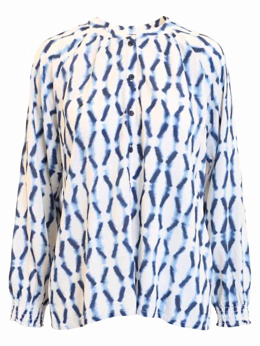 Fin mönstrad blus i skön kvalité. Rund luftig halsringning med knappar framtill. Långa ärmar med smock nedtill. Snyggt till ett par jeans.