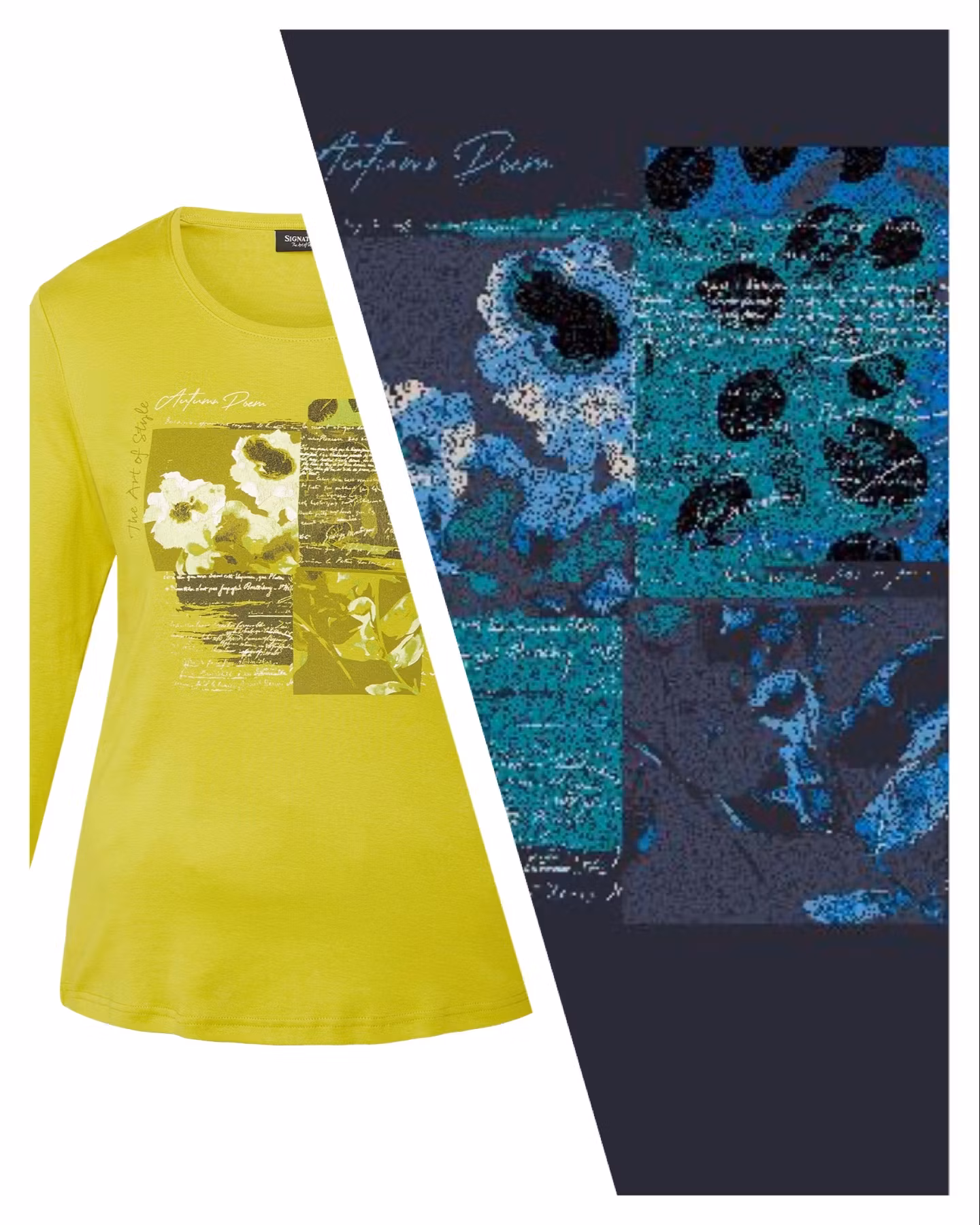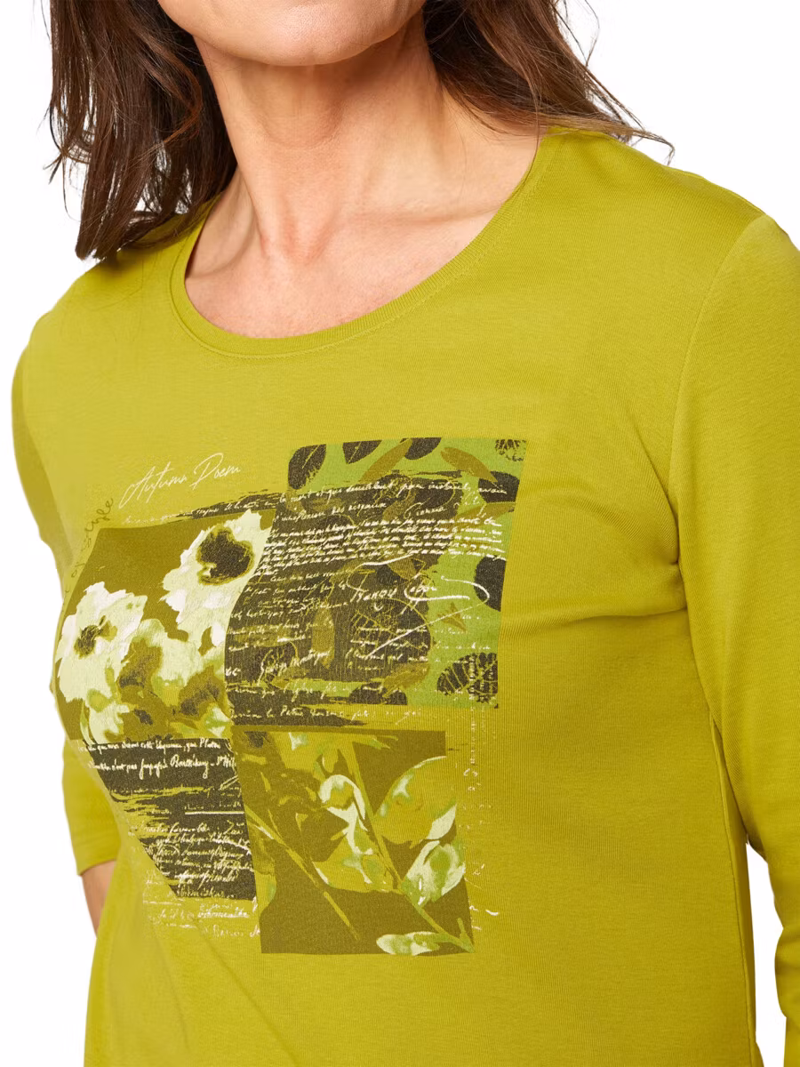 Stilren topp i jerseykvalité med snyggt print, 3/4 ärmar och rund hals.