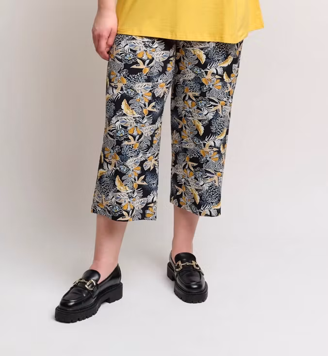 Snygga lediga byxor i svart/beige toner med resår i midjan och genomgående knappar framtill. Perfekta byxan till vardag eller fest.100% Viskose, 5% Elasta ... [Se fullständig beskrivning]