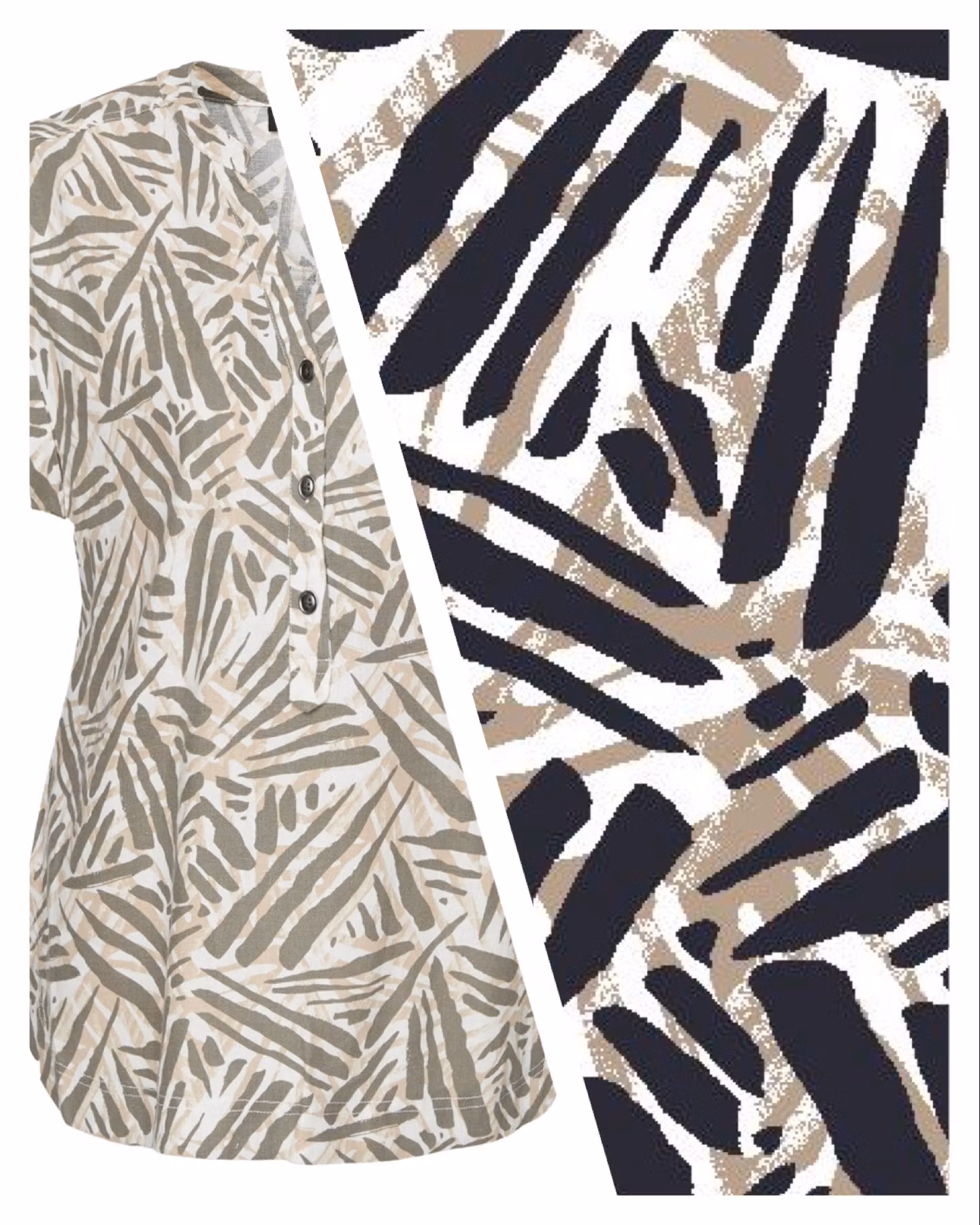 Snygg topp i milda blå/beige toner med korta ärmar och V-halsringning med knappar framtill. Härlig sval kvalitet!(Se färgen bättre på klänning i samma prin ... [Se fullständig beskrivning]