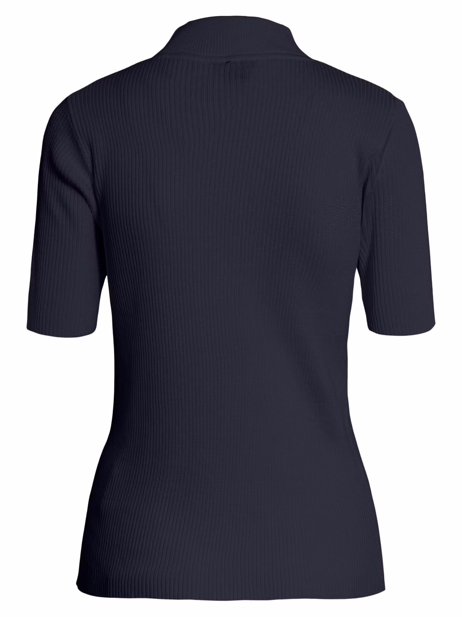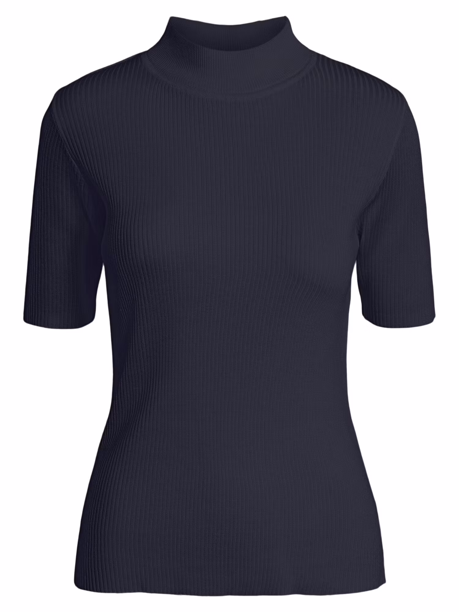 Snygg modern ribbstickad bas-topp med korta ärmar, lite högre rund mjuk halsringning. Kvaliteten på viskosen gör att toppen blir lite glansig och passar superfint till alla tillfällen.